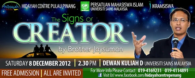 Hidayah Centre Penang, in collaboration with PMI USM and IkramSiswa USM brings you...The Signs of Creator by Brother Jaysuman.